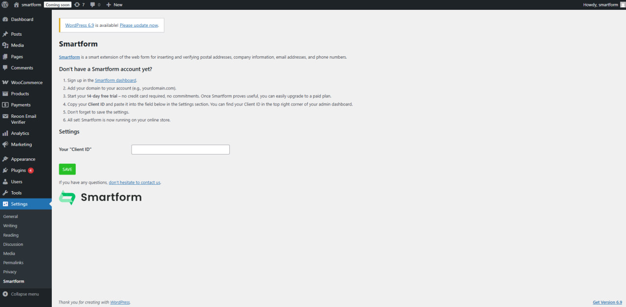 Integrace Smartformu do WooCommerce je díky našemu pluginu otázkou několika minut. Získáte tím okamžitou kontrolu a našeptávání adres, firemních údajů i e-mailů přímo ve vašem objednávkovém formuláři.